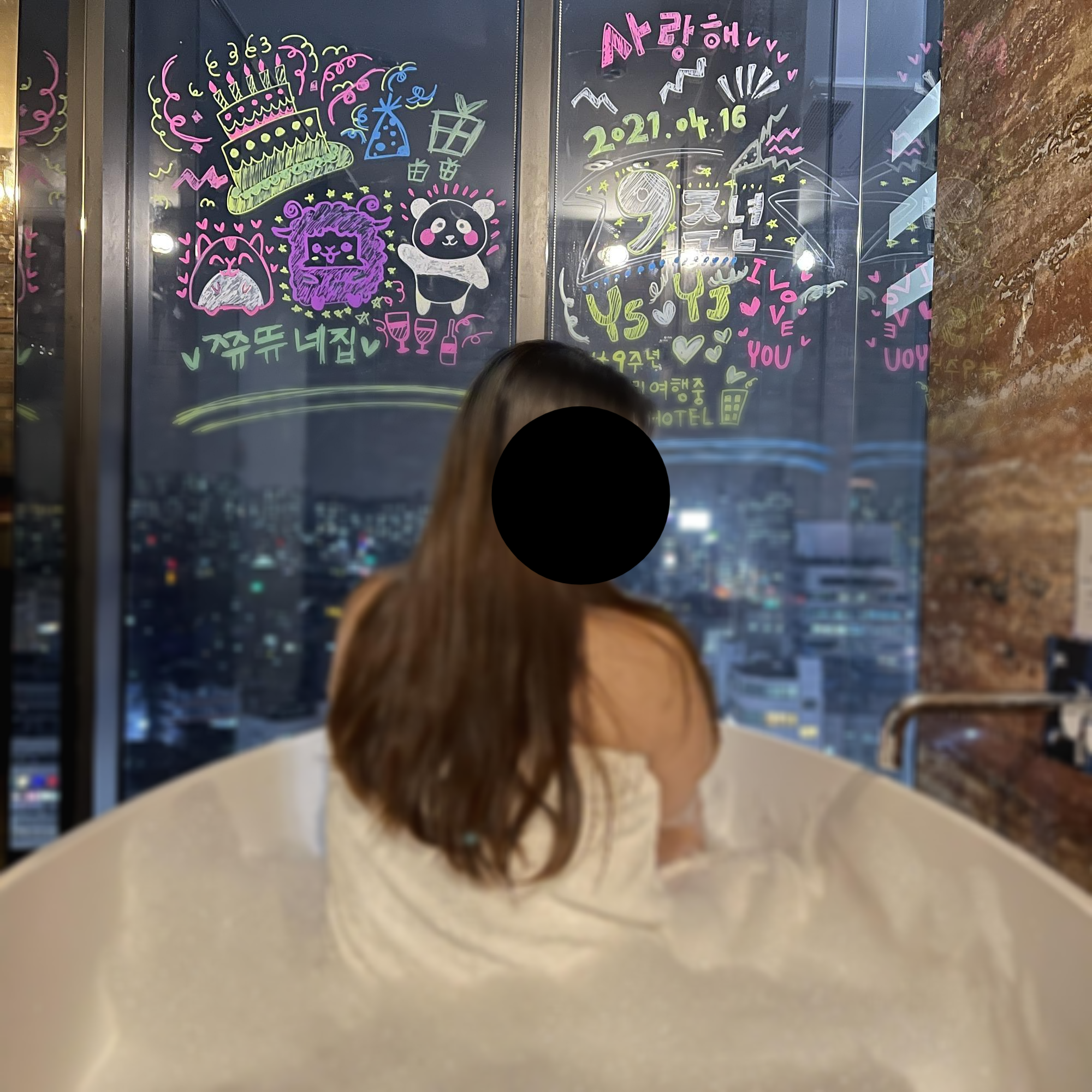 ▶ 유리창에 낙서나 그림을 그려 추억을 남기세요.