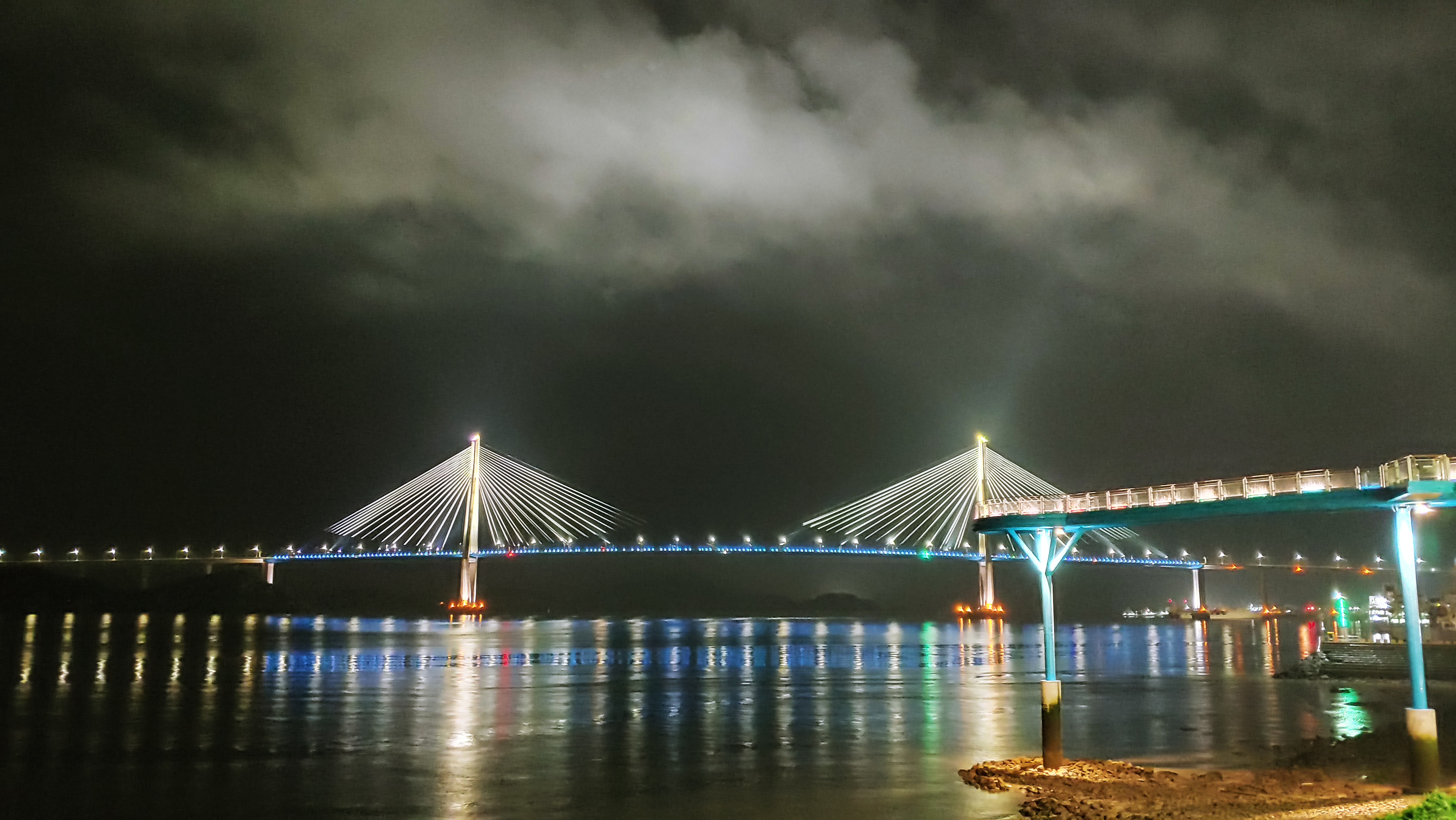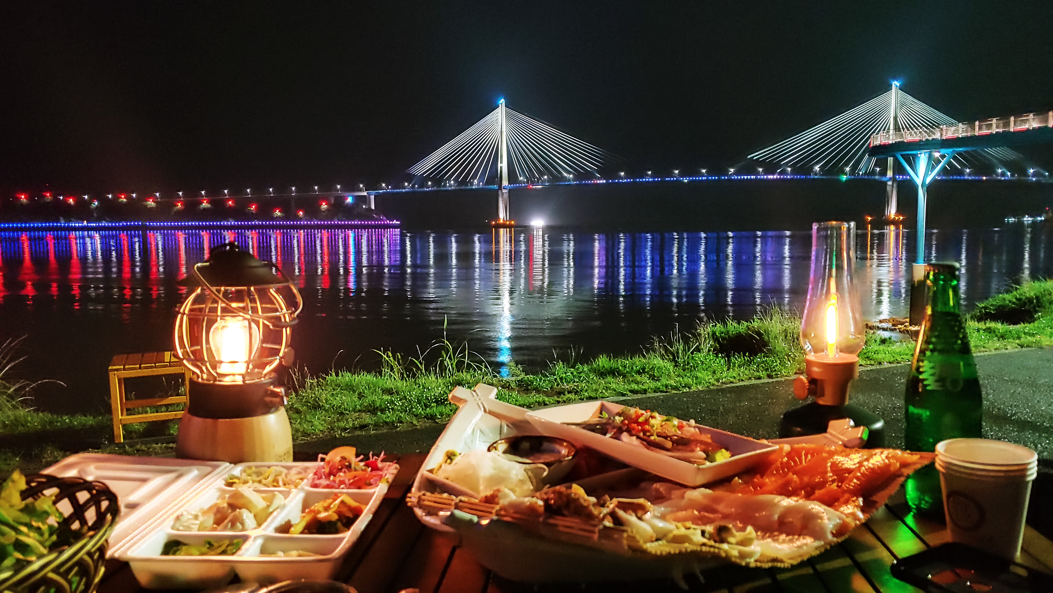 시원한 바다와 아름다운 다리 야경